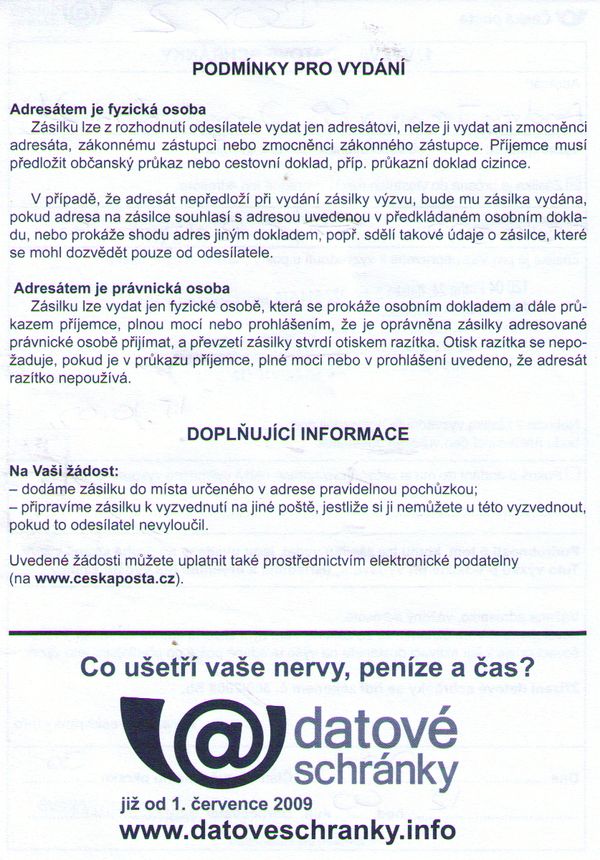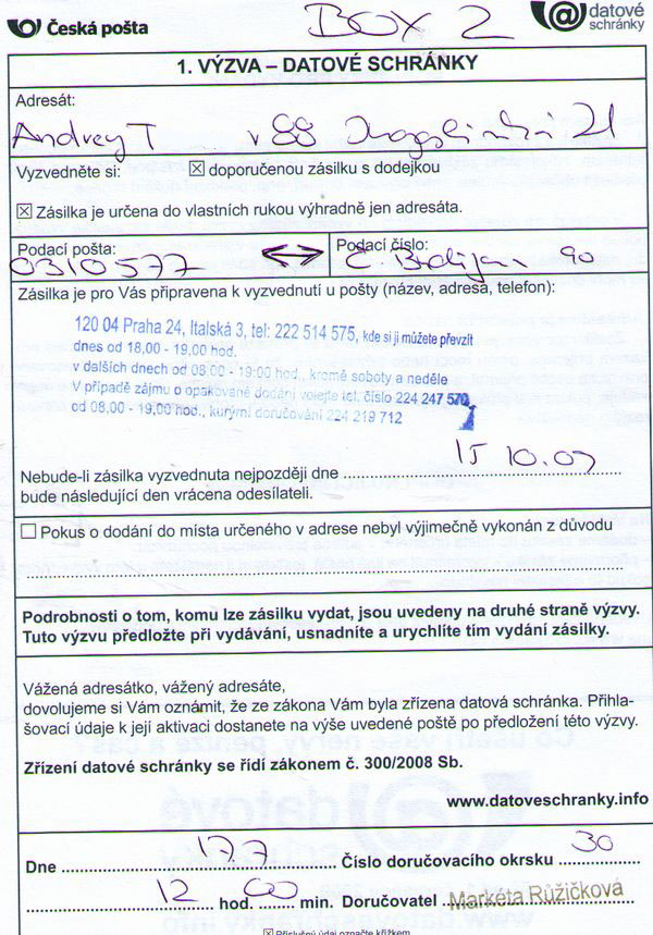 почтовый ящик или datova schranka фирмы в